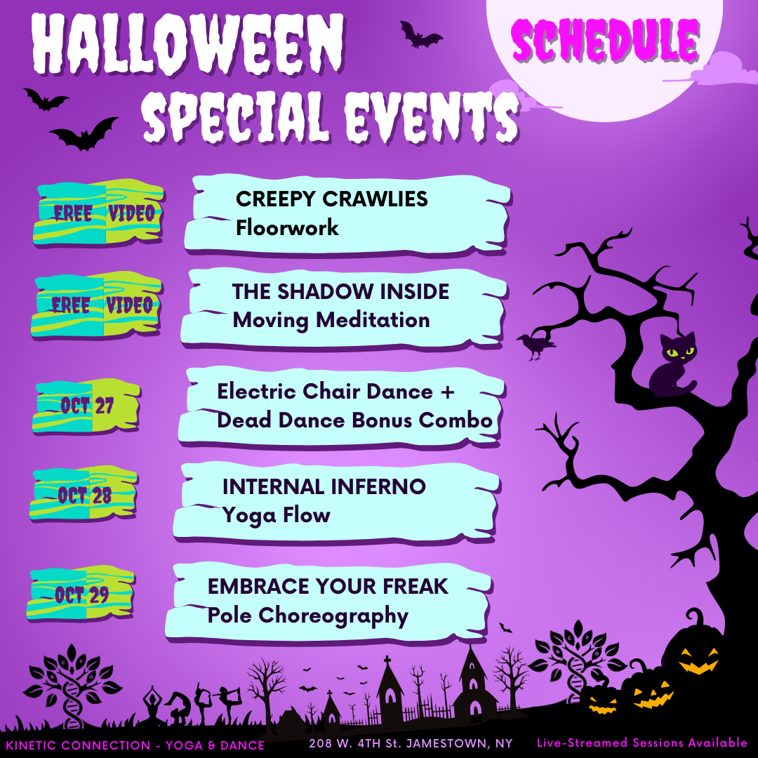Explore a variety of dance and yoga with a touch of Halloween magic.