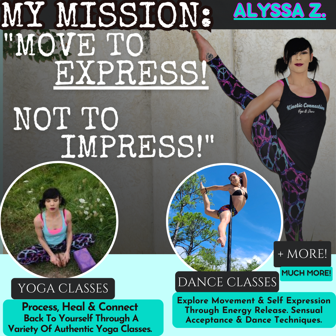 Alyssa enjoys teaching a wide range of classes: from fast-paced & high energy classes to slow-paced & detailed classes, adjusting her class styles to fit her students needs or goals. Alyssa likes to stay in the moment and keep herself on her toes; often referring to herself as a box of chocolates! Alyssa strives to continuously learn & grow in order to constantly provide students with new, innovative & exciting techniques to explore! "You never know what will be coming... but you know it will be delicious!" Alyssa uses her real life experiences with trauma, mental health & neurodivergence to form deeper understanding with her students beyond her "text book training" & credited certifications; hoping to make classes less triggering & more inviting. Regardless of the class style that Alyssa teaches, she invites students to understand the motivation & "WHY" behind the practices she instructs...instead of simply the "HOW". Alyssa encourages her students to ask questions & to reach deep inside themselves to overcome the hurdles associated with their practice in order to succeed in their goals. Alyssa's unique teaching approach opens her students to embracing their truest version of self, allowing their confidence to grow & form trust in creating their own paths for their practice. Alyssa is very well versed in flexibility & strength training; beginning Dance & Gymnastics at the age of 3. She finds joy in challenging herself both physically & mentally, she hopes to provide opportunities in class for students to challenge themselves as well. She believes in encouraging authenticity & acceptance of self in classes. Utilizing a more holistic approach to her teaching, she focuses on the potential psychological benefits of Yoga & Dance. Alyssa believes in using the body as a way to get in touch with the subconscious & find self-reflection. Alyssa strives to find more approaches to making Yoga & Dance Meditation potentially less triggering & more inclusive, so all may be able to receive the possible mental & physical health benefits of Yoga & Dance."